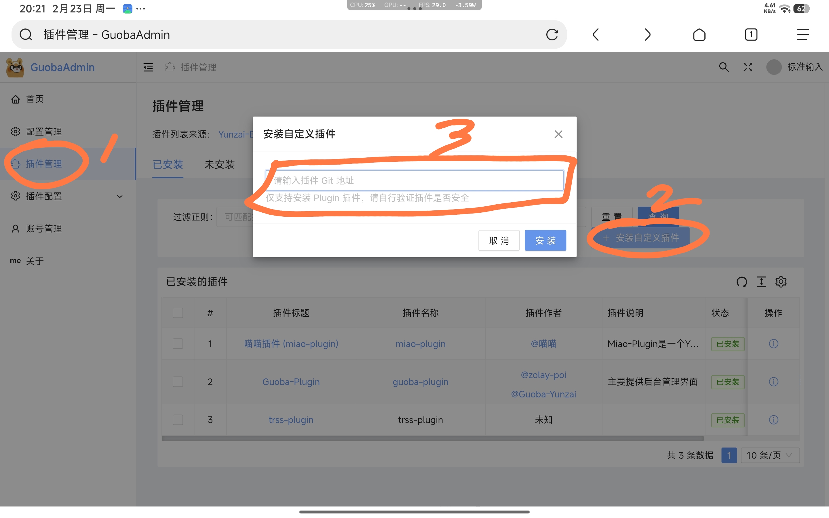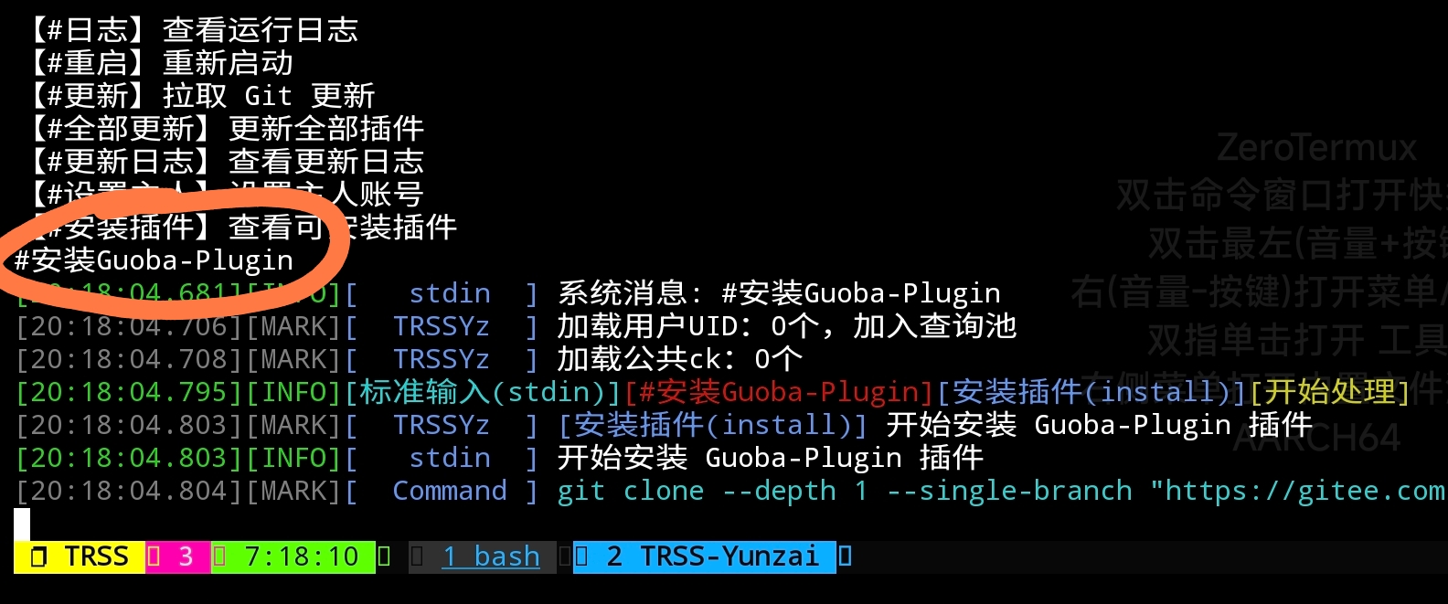 ##2.2安装Guoba-Plugin以及phi-plugin 启动TRSS之后在命令行输入下面的命令回车