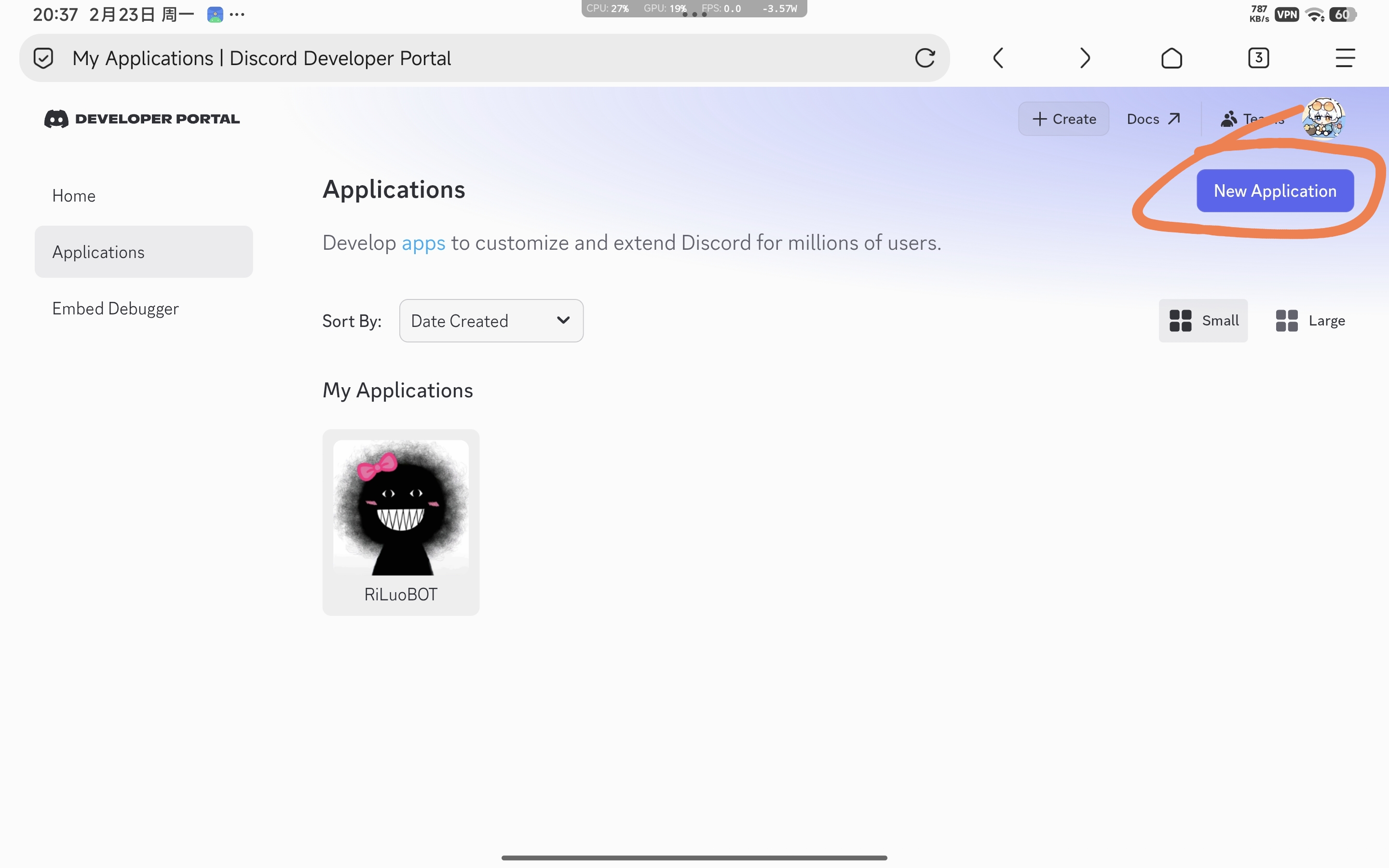 等待安装完成后会自动重启 我们打开DEVELOPER PORTA 点击New Application