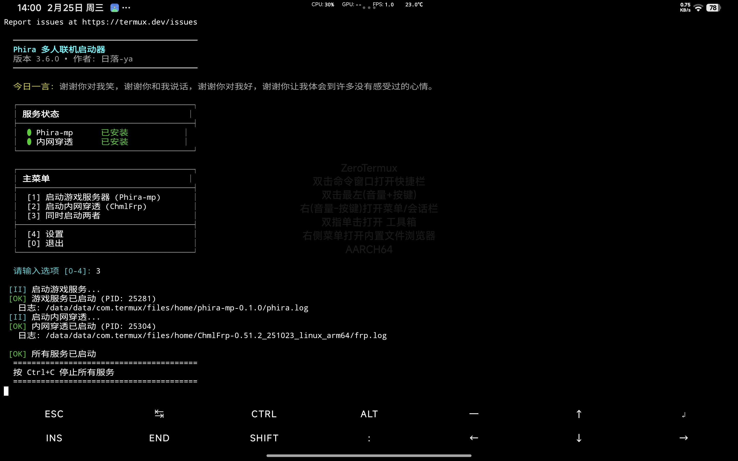 在启动器页面输入3即可同时启动Phira-mp以及内网穿透