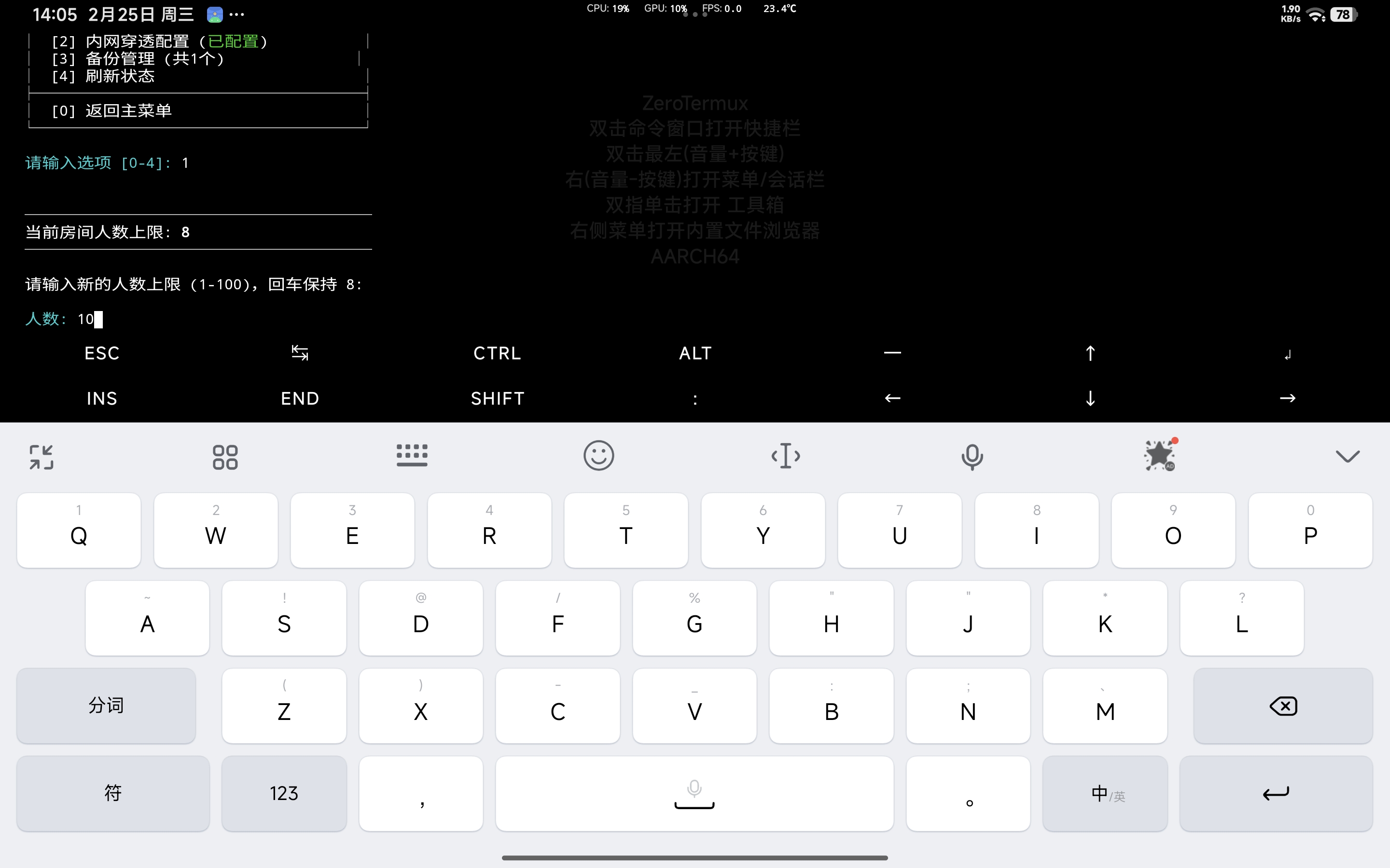 启动之后就可以进入游戏链接服务器了 注意:ZeroTermux需要在后台运行,请勿删除