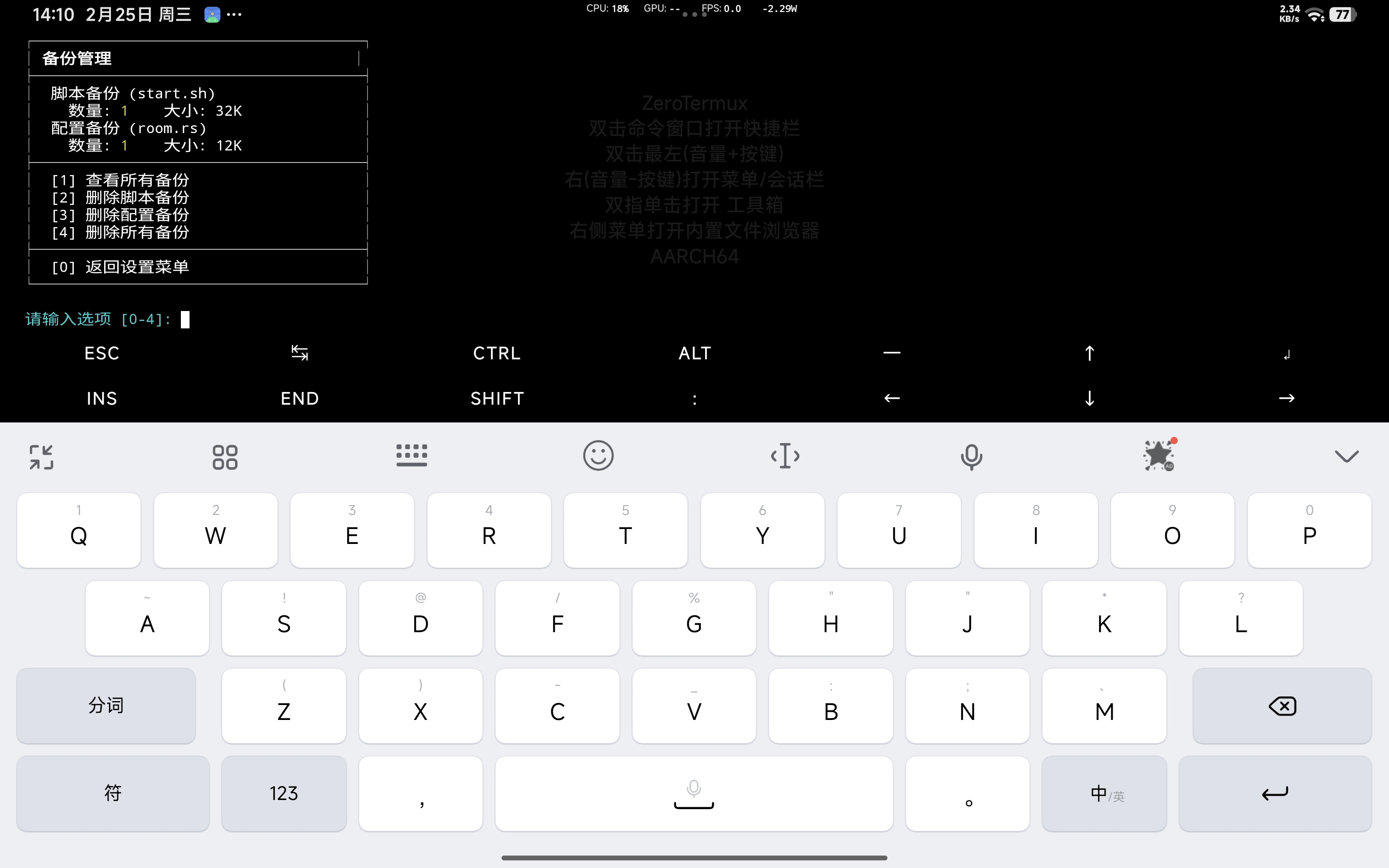 在设置页输入3即可进入备份管理 可以在该页面进行删除管理