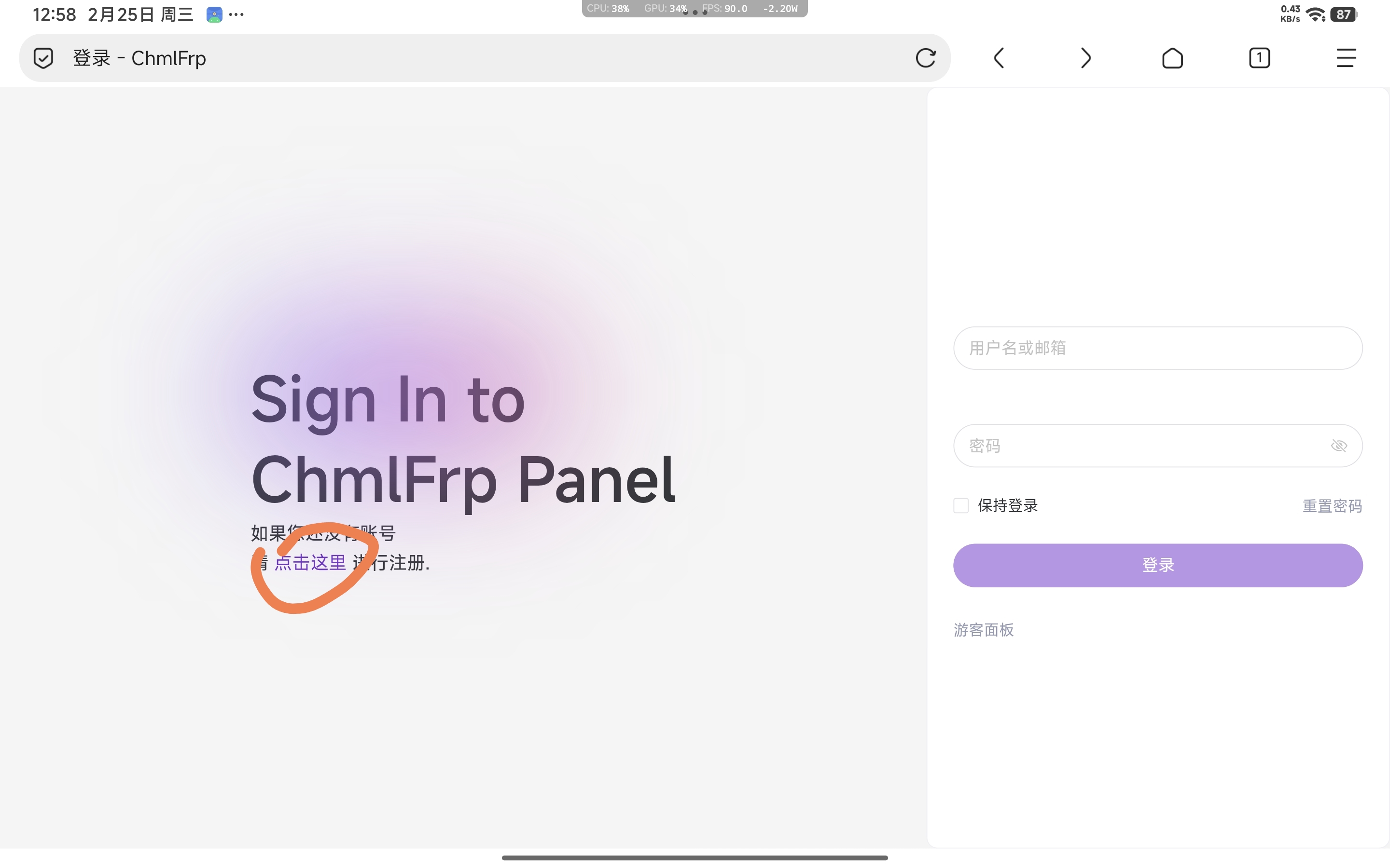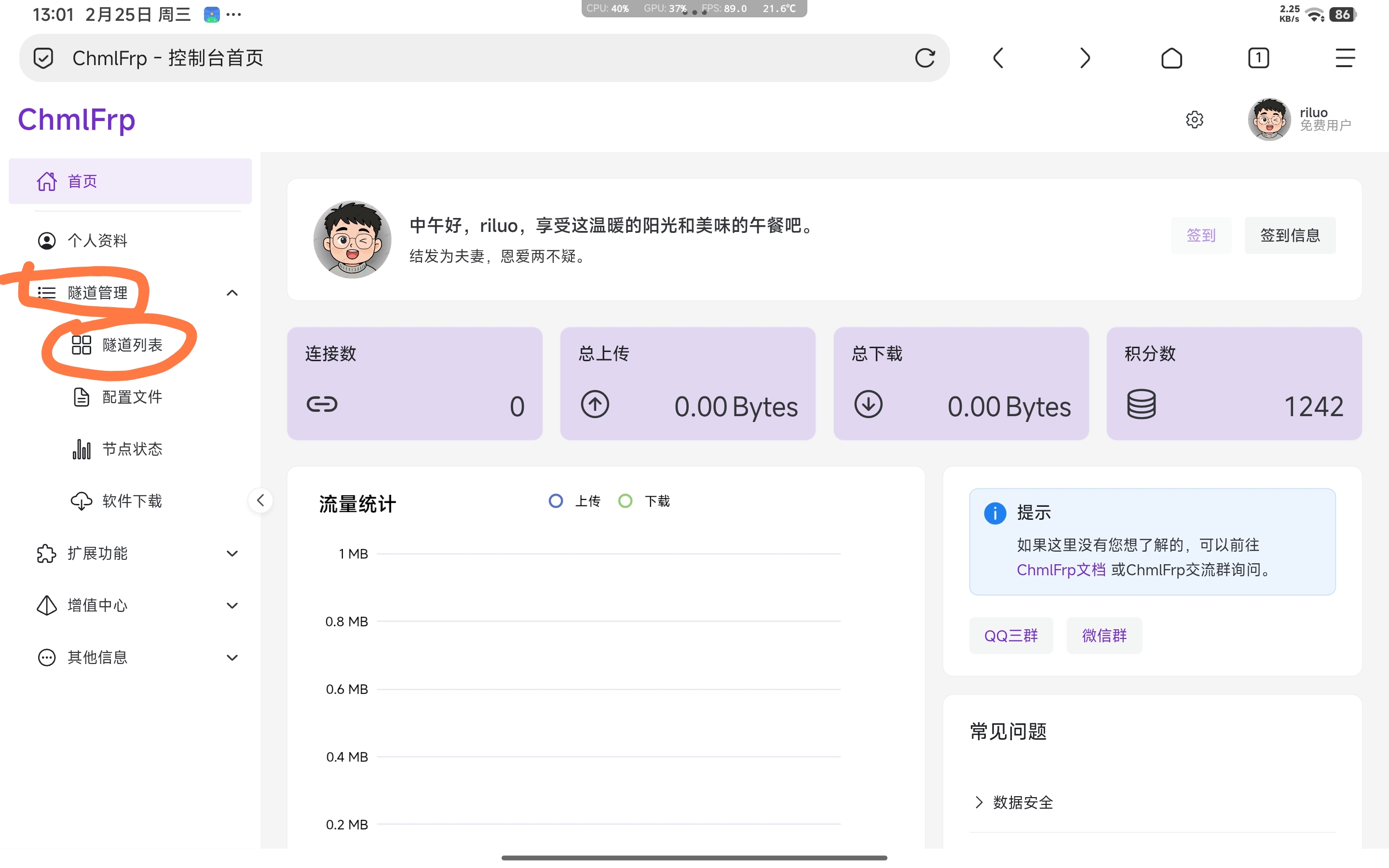 本次所使用的内网穿透为chmlfrp 我们打开chmlfrp官网 注册并登陆